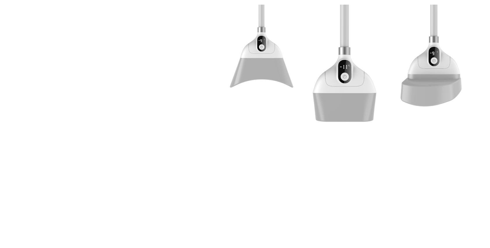 Les embouts souples en silicone médical, disponibles en plusieurs tailles, permettent de cibler précisément chaque zone à traiter. Grâce à leur conception ergonomique et enveloppante, ils assurent une diffusion uniforme du froid sur l’ensemble de la surface, ce qui améliore la performance du traitement tout en respectant la peau.